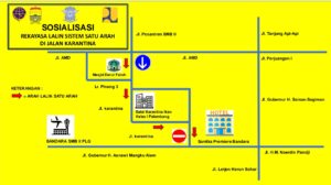 Dengan adanya sistem satu arah ini, maka rute kendaraan juga akan berubah dimana kendaraan dari arah jalan karantina hanya diperbolehkan ke luar menuju Jalan Gubernur H. Asnawi Mangku Alam. Sebaliknya, kendaraan dari arah Bandara SMB ll tidak diperbolehkan masuk menuju jalan Karantina, diarahkan langsung lurus.