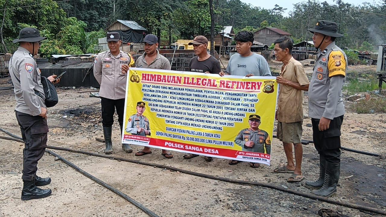 Sejumlah spanduk larangan dan peringatan telah dipasang oleh jajaran Polsek Sanga Desa di titik-titik yang diketahui sebagai lokasi aktivitas penyulingan minyak ilegal. Pemasangan spanduk itu disebut sebagai bentuk peringatan sekaligus penegasan sikap hukum.