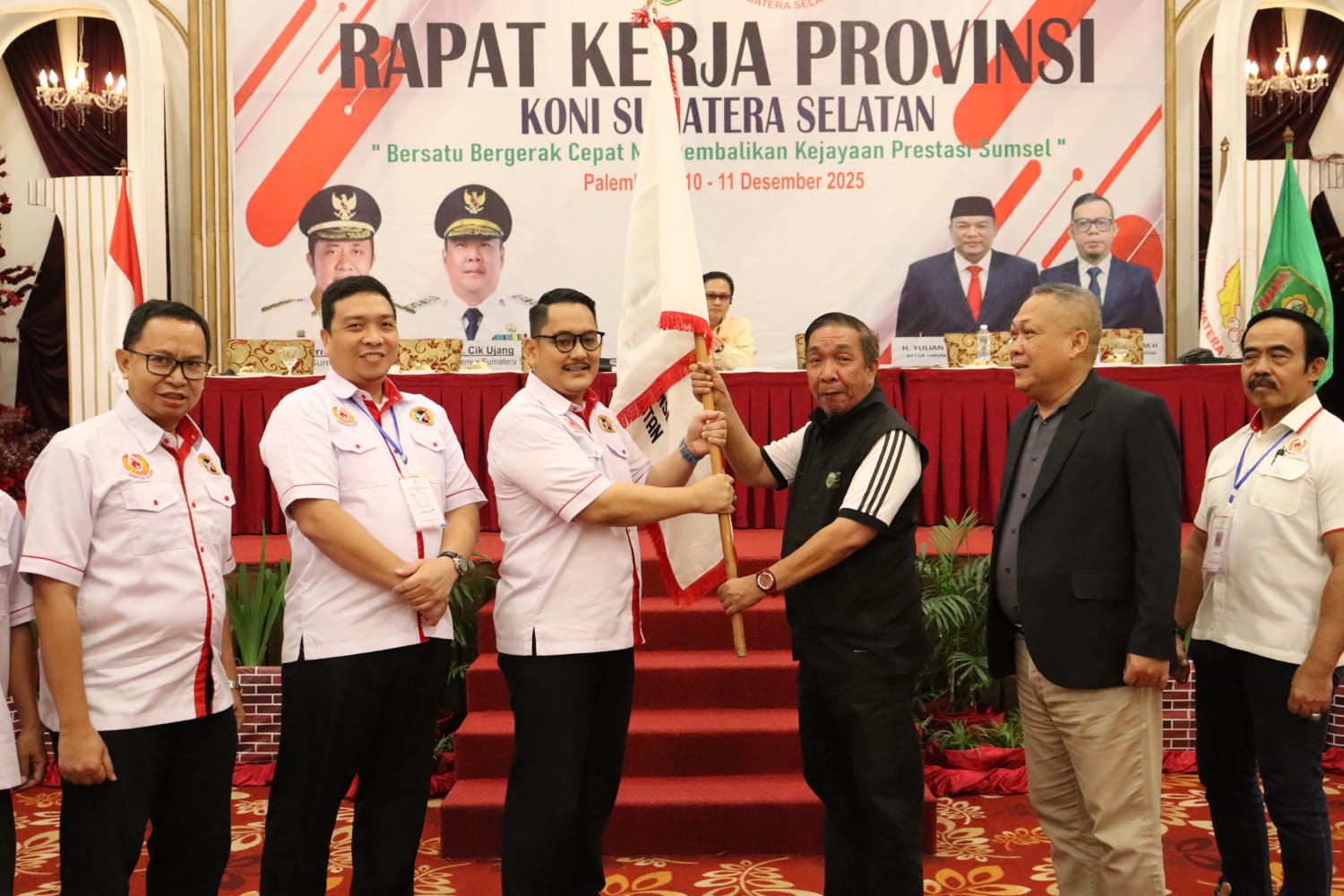 Acara tersebut juga dihadiri oleh tokoh-tokoh penting olahraga nasional dan daerah, antara lain Wasekjen KONI Pusat Brigjen (Purn) Achmad Saefudin, Ketua Umum KONI Sumsel H. Yulian Gunhar, serta Ketua Harian KONI Sumsel H. Aliandra Pati Gantada.
