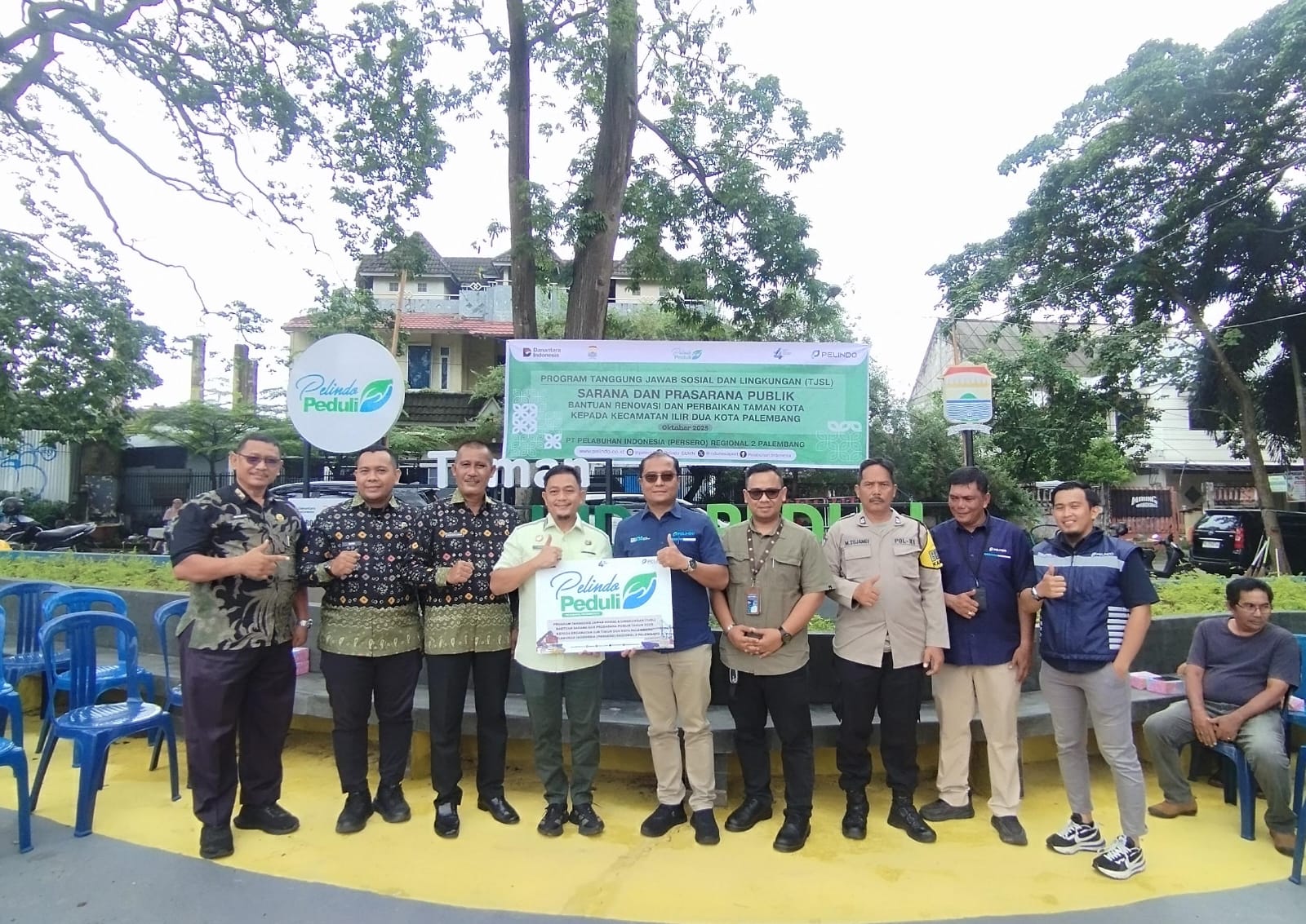 Sumsel.Tajam.co.id, Palembang – Plt. Kepala Dinas Pariwisata Kota Palembang M. Irman, S.STP., M.Si menghadiri kegiatan Program Tanggung Jawab Sosial dan Lingkungan (TJSL) dari PT Pelabuhan Indonesia (Persero) Regional 2 Palembang, berupa bantuan renovasi dan perbaikan taman kota untuk Kecamatan Ilir Timur II, Kamis (23/10).