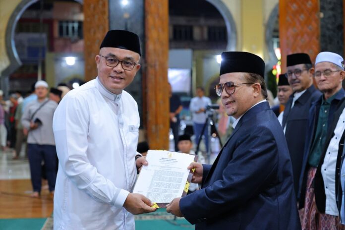 Sumsel.Tajam.co.id, Palembang – Pemerintah Kota Palembang mengajak masyarakat menjadikan peringatan Nuzulul Qur’an 1447 Hijriah sebagai momentum memperkuat nilai keimanan serta menjadikan Al-Qur’an sebagai pedoman dalam kehidupan sehari-hari. Hal ini disampaikan Sekretaris Daerah Kota Palembang Aprizal Hasyim saat menghadiri Salat Isya dan Tarawih berjamaah yang dirangkaikan dengan peringatan Nuzulul Qur’an di Masjid Darussaid, Sabtu (7/3/2026).